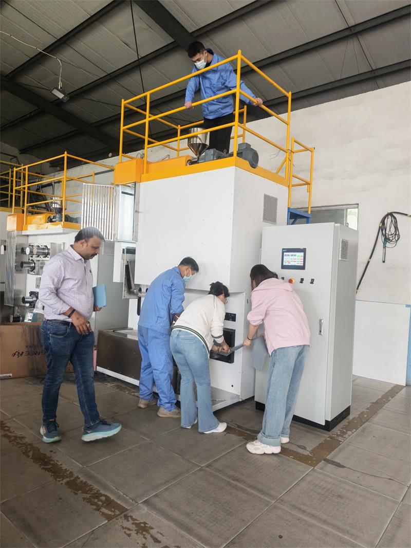 The spring breeze warms everything, and all things are renewing themselves. In this season brimming with vitality and hope, the factory area of Zibo Fangchen Mechanical Technology Co., Ltd. is filled with a lively atmosphere. As the company's brand influence in the international market continues to expand, recently, customers from various countries and regions, like attending a springtime rendezvous, have traveled thousands of miles to come to our factory for on-site visits and inspections, and conducted on-site acceptance and trial runs of their spunbond nonwoven fabric testing machines. They jointly discussed the cooperation vision and explored new opportunities in the industry.